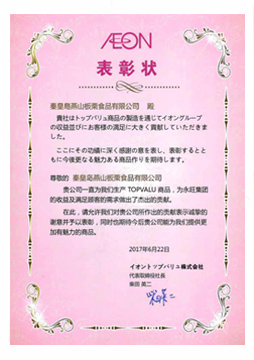 2017年 --→ 被日本亞洲零售商“永旺集團”評為食品企業(yè)優(yōu)秀供應商。